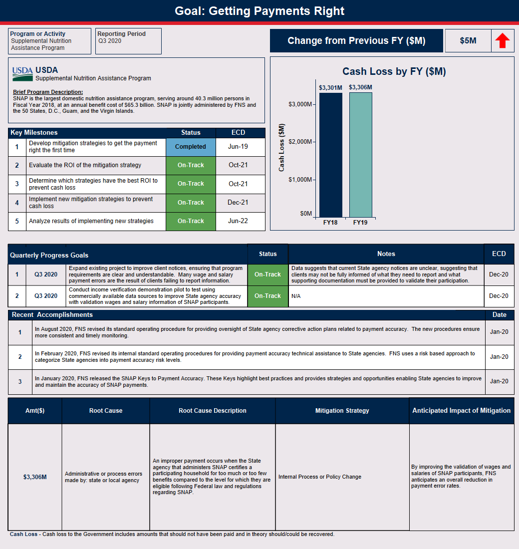 The Food and Nutrition Service (FNS) will continue to conduct training to assist State agencies in identifying the specific corrective actions needed to address the root causes of error found in their States. FNS will also utilize its payment error report and dashboard tools to provide technical support to State agencies as they implement corrective actions to ensure the root causes being addressed are properly targeted. In addition, FNS has updated the Keys to Payment Accuracy, a document for State Supplemental Nutrition Assistance Program (SNAP) administering agencies on key strategies for improving payment accuracy. As part of the development of the update, FNS focused on solutions that incorporate caseload size and administrative characteristics to address variations in SNAP administration across all 53 SNAP State and Territorial agencies. In Fiscal Year (FY) 2025, FNS issued grants to State agencies aimed at improving their ability to verify earned income. These third-party income verification services provide States with improved resources to accurately determine income for the SNAP benefit calculation.